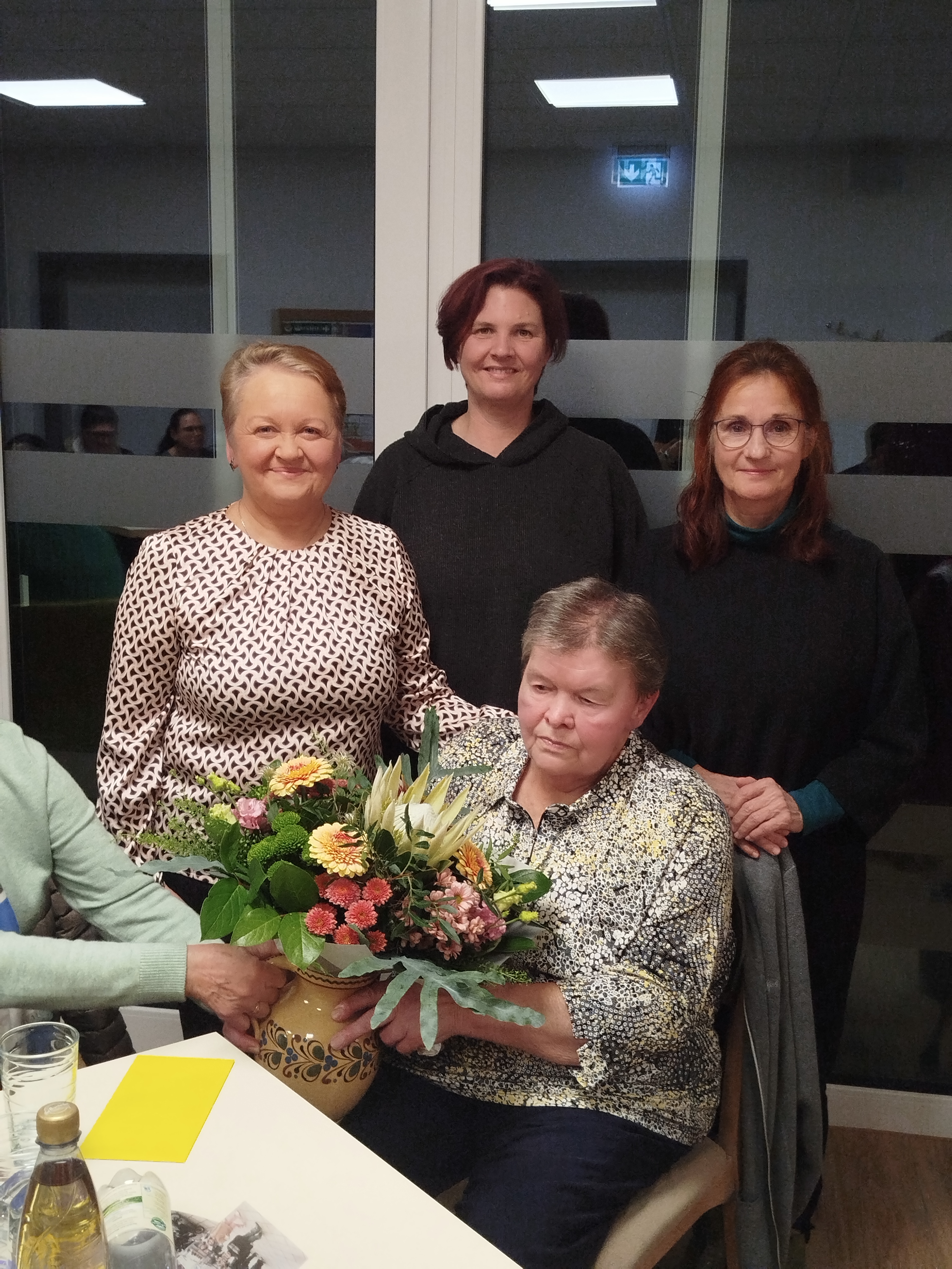 Svetlana Kovalov wurde für Ihre Tätigkeit von 20 Jahren beim Diakonieverein geehrt, Kathrin Aepfelbach hat die Qualifikation zur Pflegedienstleitung abgeschlossen und Dekanin Martina Beck bedankte sich bei Irmgard Harz für 36 Jahre Tätigkeit für den Diakonie-Ausschuss.