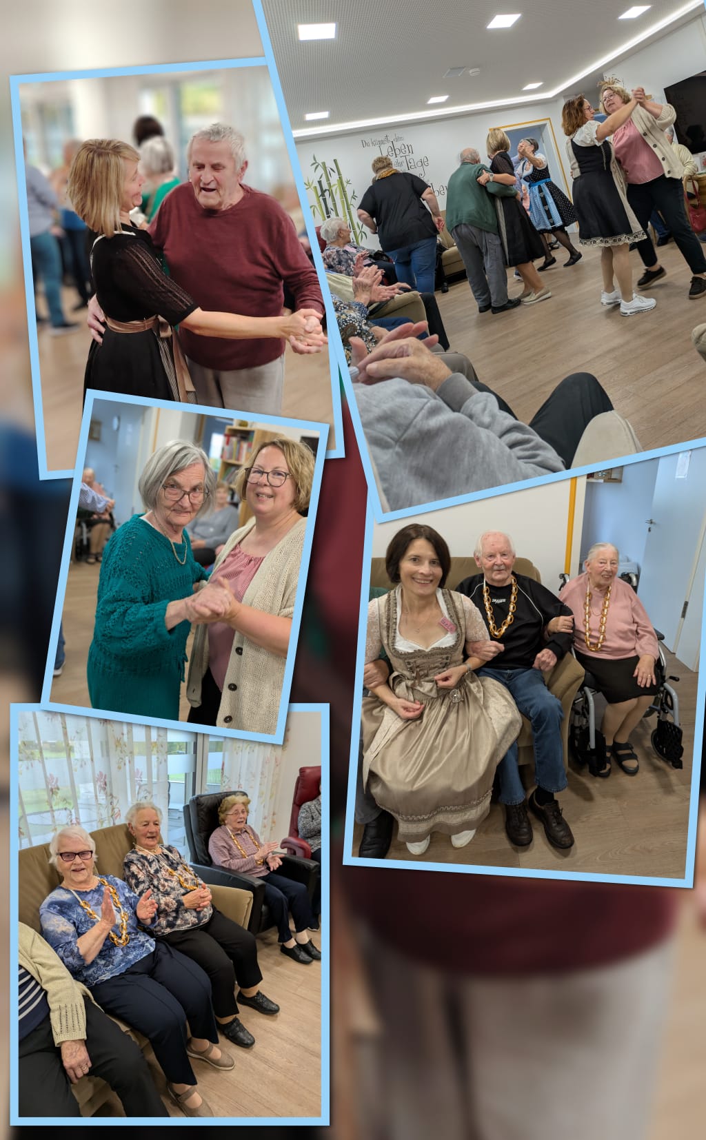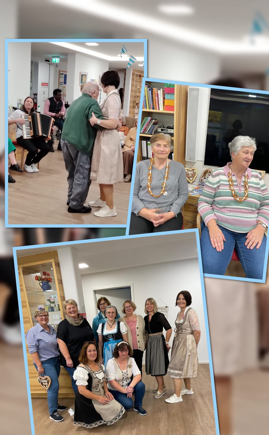 Den Abschluss des Monats bildete die Oktoberfestwoche, die in der Tagespflege längst zur liebgewonnenen Tradition geworden ist. Mit viel Engagement wurde gefeiert, gespielt und gelacht: Spicker, Nageln, Bierdeckelweitwurf und Dosenwerfen sorgten für gute Laune, während Obazda, Rettich, Schokofrüchte und Schmalzbrote für das leibliche Wohl standen. Für zünftige Stimmung sorgte Franzi Friedrich mit Live-Musik und Tanz, und bei der täglichen Tombola freuten sich die Gäste über kleine und große Gewinne.
